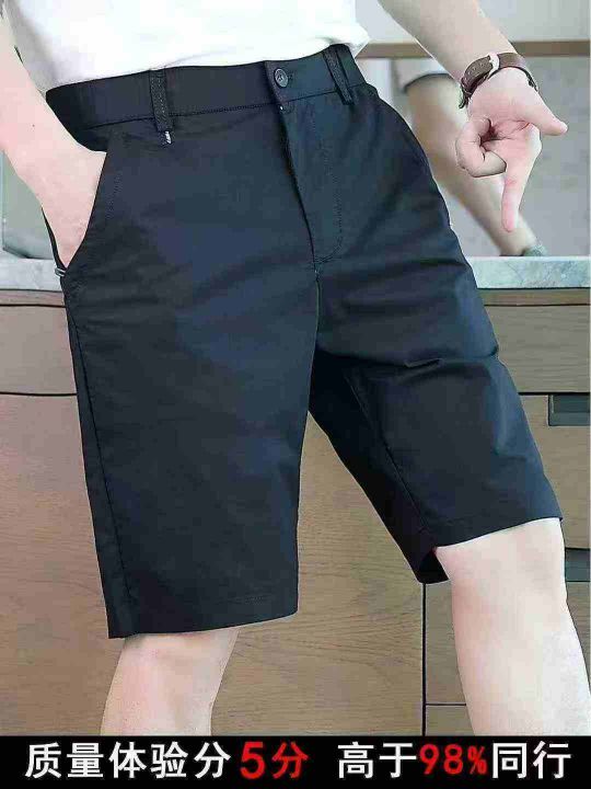 新款夏季薄款纯棉休闲西装短裤男士中裤高端修身直筒五...