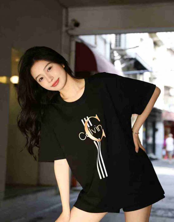 全清价6.8400件\'夏季潮牌Calvin字母印花短袖T恤男三条杠宽松圆领半袖ins潮...