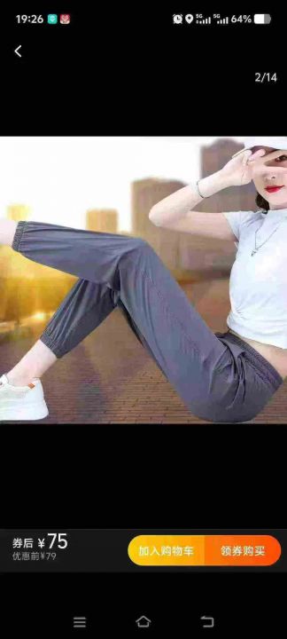 ☆女装夏季束脚冰丝运动休闲裤,803件,S-2XL,面料成...