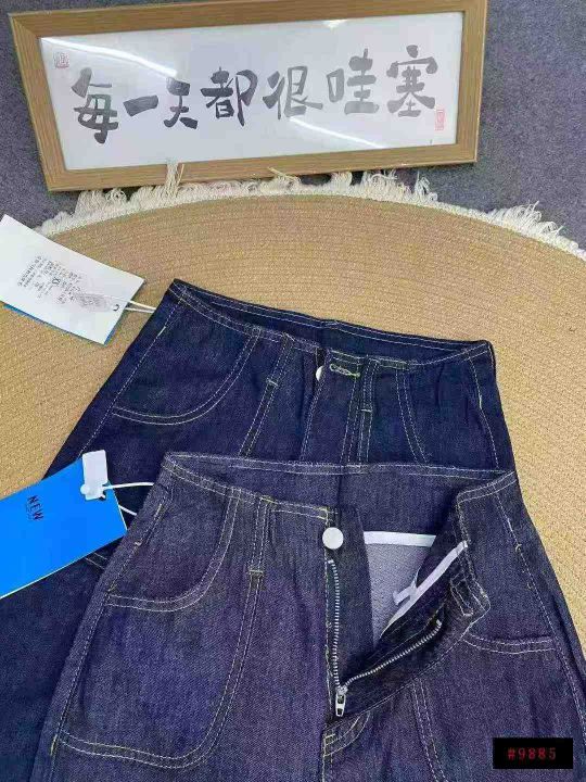 复古蓝微喇牛仔裤288件9.5,春秋高腰显瘦,裤头包边,...