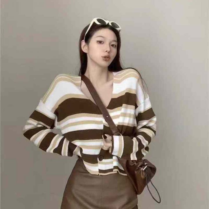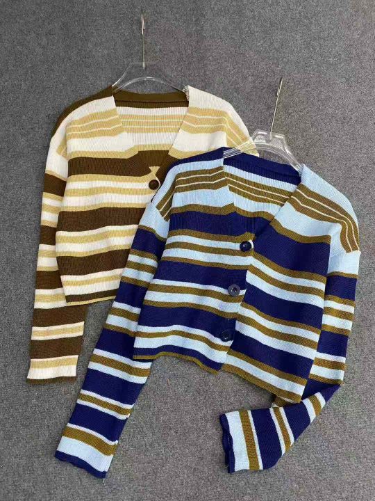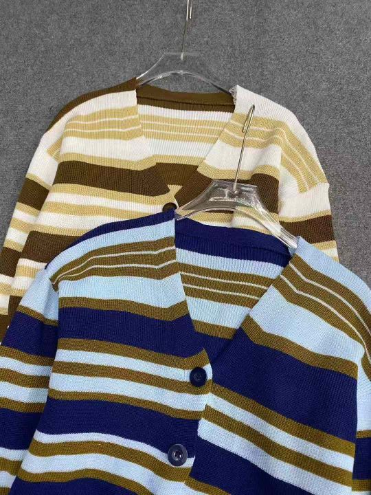 软糯撞色条纹宽松慵懒风百搭针织毛衣开衫,均码面料软糯舒适弹力大,2色50件,独立包装