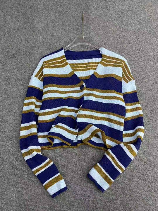 全清5.5软糯撞色条纹宽松慵懒风百搭针织毛衣开衫,均...