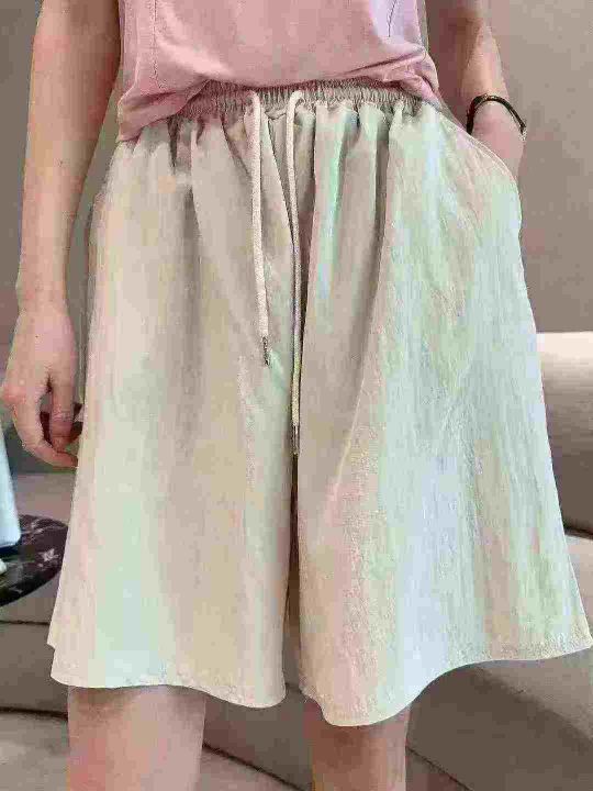 上新全清:11.8一件多巴胺抽绳阔腿松紧腰宽松休闲短裤...