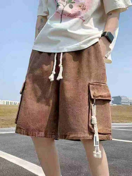 松紧腰工装牛仔短裤男款夏季薄款潮牌宽松大码短裤80件...
