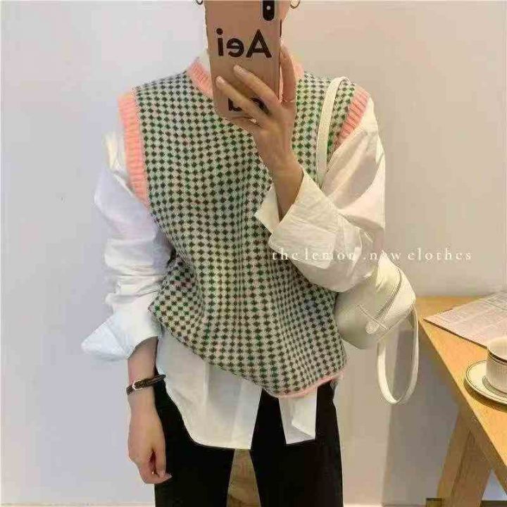 秋季新款韩版复古撞色提花宽松叠穿针织毛衣马甲背心,独立包装,均码宽松版...