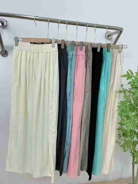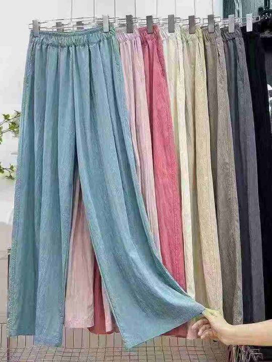 ☕️冰丝棉麻阔腿裤女夏季新款高腰慵懒垂感休闲山本裤云朵裤3600条全清8.8元分货+1 ,码数S到XXL ,有8个色,裤子有口袋,精品独立包装好面料~