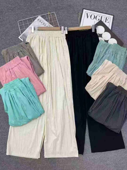 ☕️冰丝棉麻阔腿裤女夏季新款高腰慵懒垂感休闲山本裤云朵裤3600条全清8.8元分货+1 ,码数S到XXL ,有8个色,裤子有口袋,精品独立包装好面料~