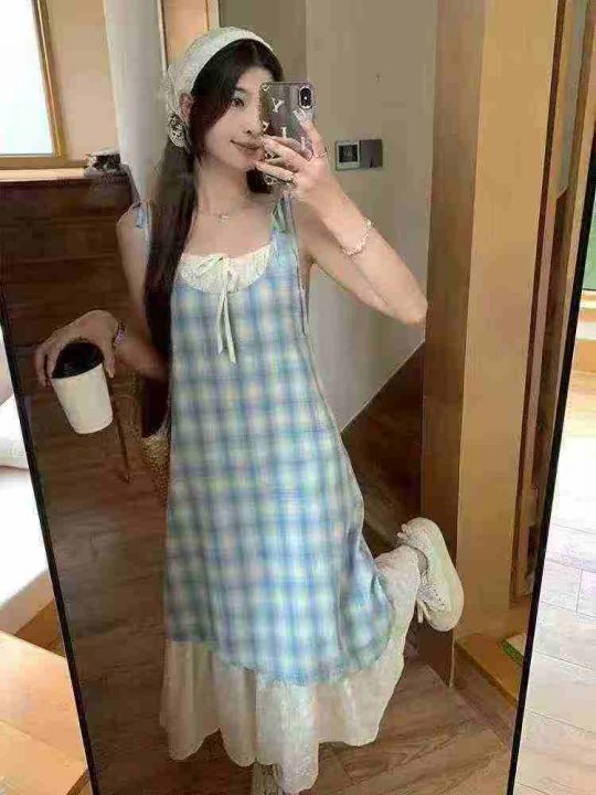 ☕️夏日度假风格子吊带裙连衣裙女夏季新款清新宽松显...