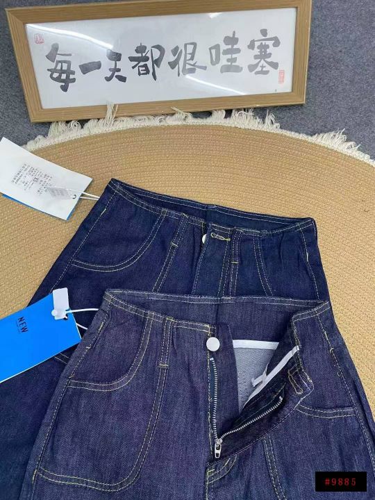 复古蓝微喇牛仔裤288件9.5,春秋高腰显瘦,裤头包边,...
