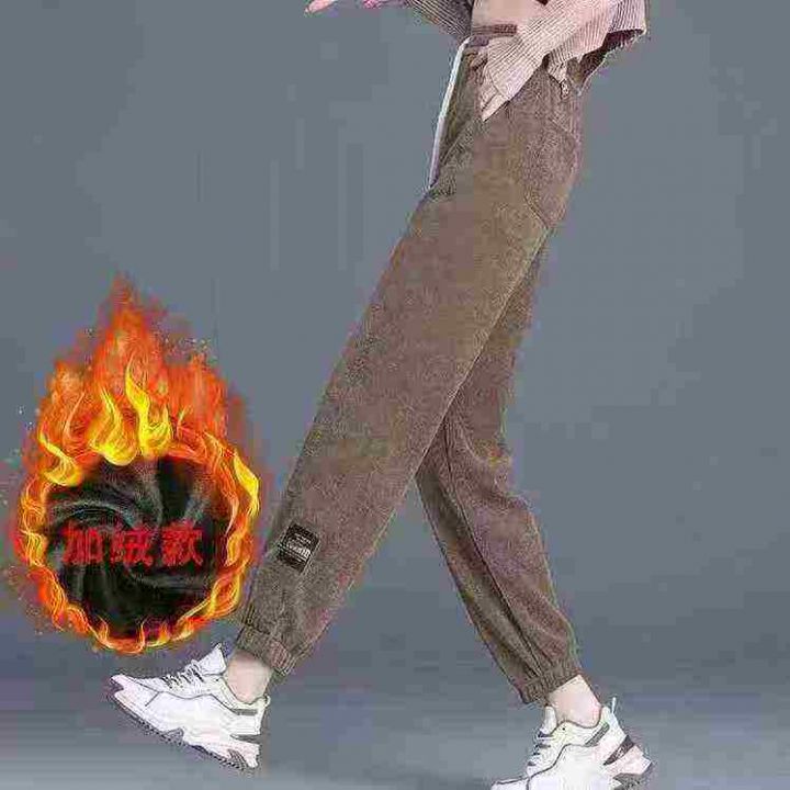 冬季新款加绒哈伦宽松毛裤时尚束脚百搭休闲裤冬天裤子...