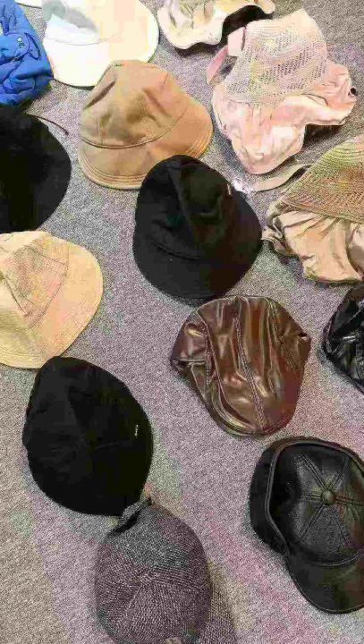 实体店下架1100件左右高品质小整杂杂款女士帽子,货品干净,基本上带包装,有十件一包和独立包装(图片模糊正常现象,联系️发原视频)