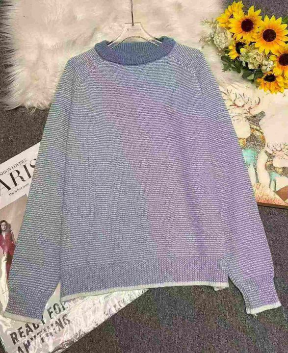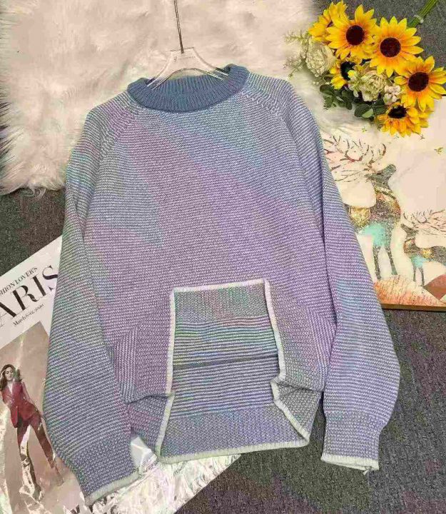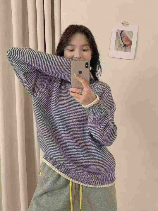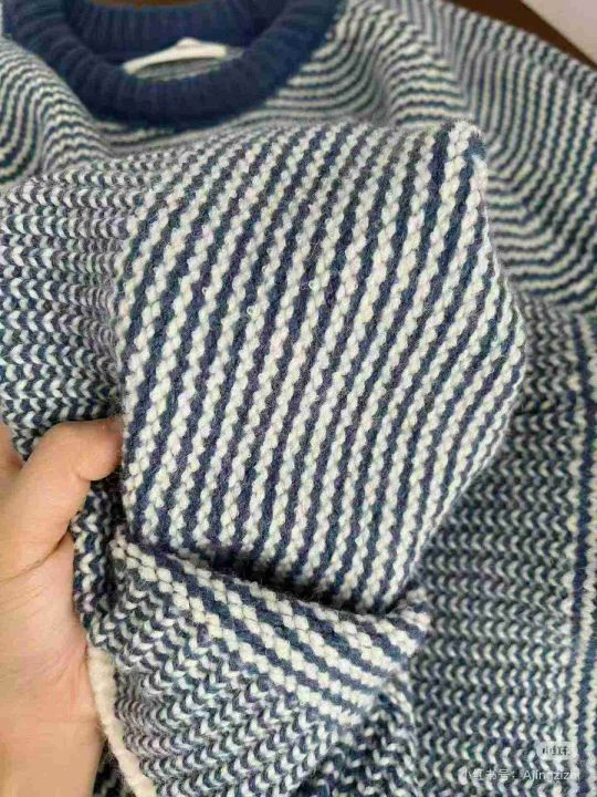 秋冬新款韩系复古蓝白条纹宽松慵懒风休闲加厚圆领套头毛衣,独立包装,均码面料软糯厚实,90件,全清7.9元超低价秒杀!