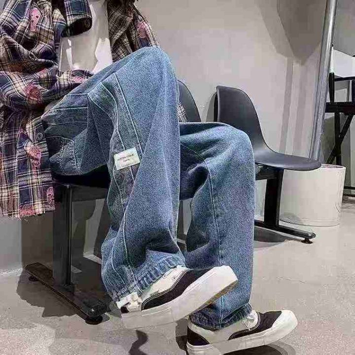 春秋新款宽松百搭松紧腰直筒牛仔裤,独立包装带吊牌,...