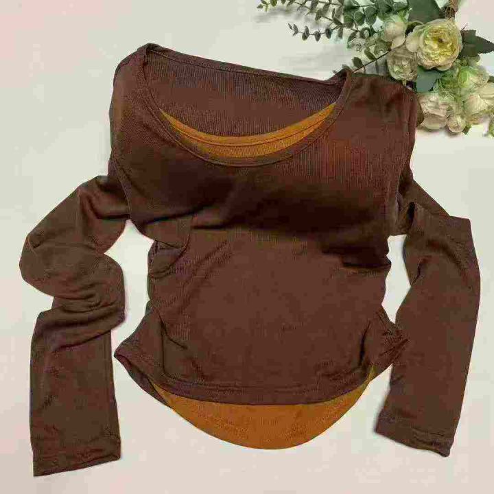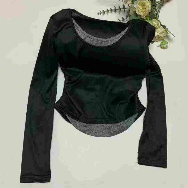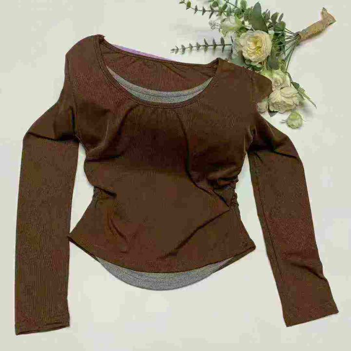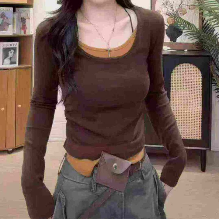 [太阳]1392件\'珊美式甜辣妹韩版假两件长袖t恤女春夏修身打底衫撞色纯欲显瘦上衣,独立包装,码数M-2XL,全清7.8元,分货➕0.5