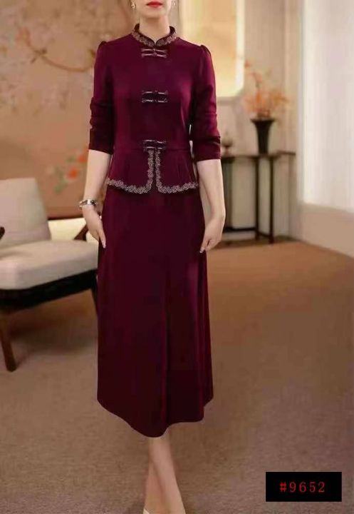 [月亮]:春秋款中式国风气质晚宴礼服连衣裙
