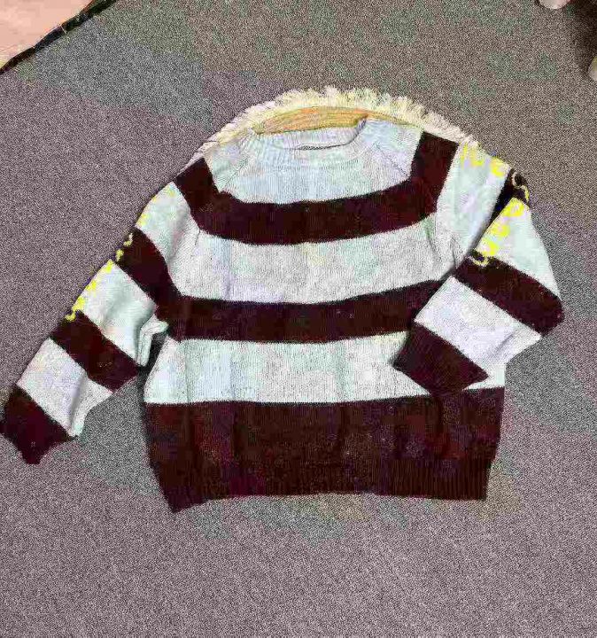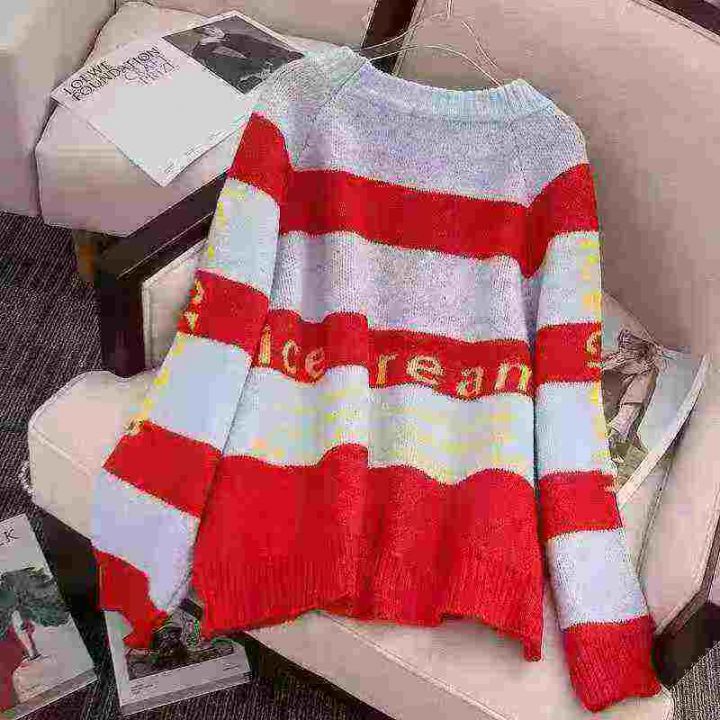 女装秋冬款复古撞色条纹ins港风大版厚重宽松毛衣针织衫上衣,独立包装,均码,633件,清8.8,分➕1
