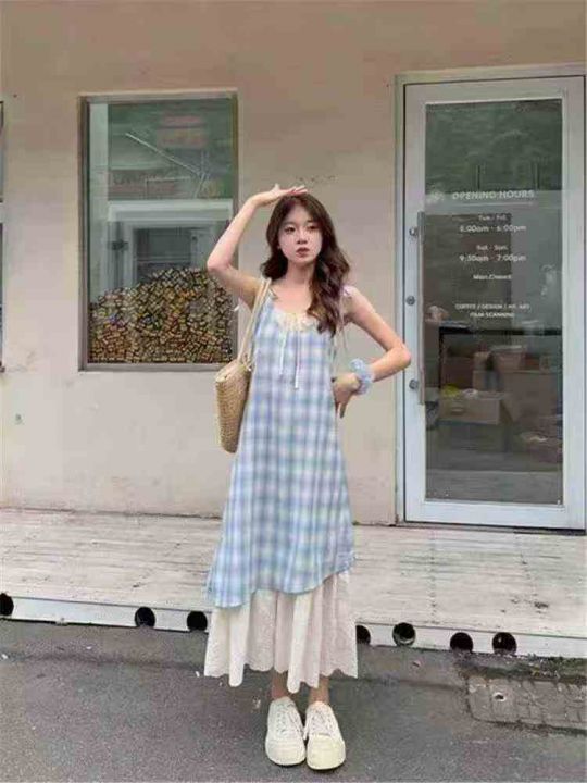 ☕️夏日度假风格子吊带裙连衣裙女夏季新款清新宽松显...