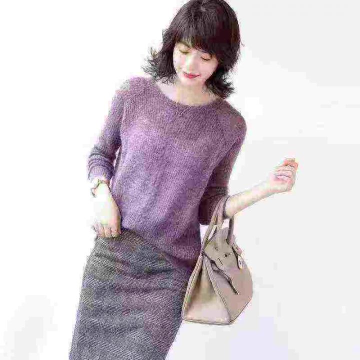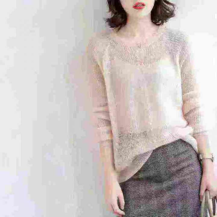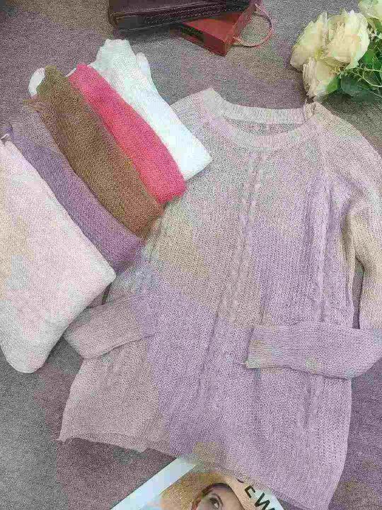 2025年春秋新款时尚百搭圆领长袖针织衫宽松显瘦打底上衣,独立包装,均码,1350件,清4.8,分➕1