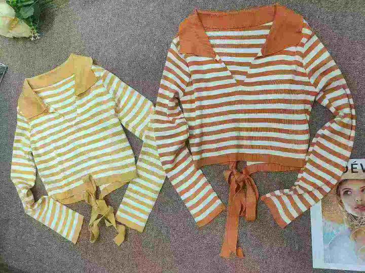 翻领针织套头修身V领针织衫绑带针织上衣,独立包装,1200件,清7.5,分➕1