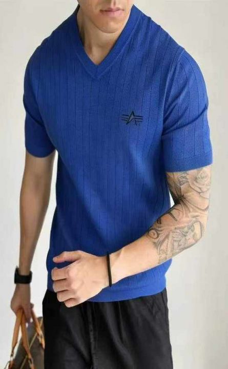 夏季新款外贸原单美式复古刺绣V领男士商务休闲针织短袖,独立包装,均码年龄软糯舒适弹力大,100件,全清6.9元超低价秒杀!