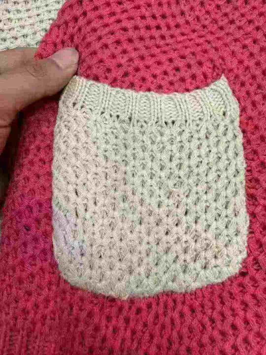 外贸原单春秋女士开衫提花西瓜红半袖中袖V领修身收腰百搭针织衫,高弹力,独立包装,Xs-L码,750件,全清3.5,分货➕0.5