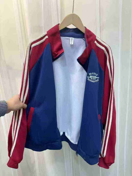 美式复古学院风辣妹春秋季短款拉链开衫女条纹拼色立领休闲外套潮,独立包装...
