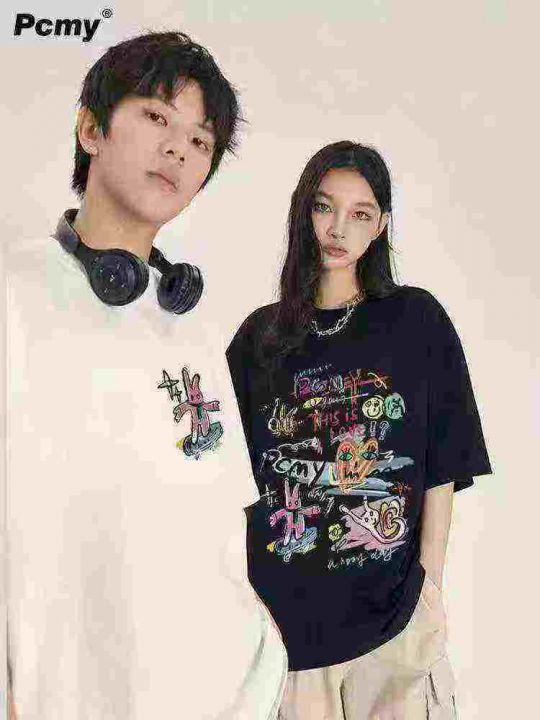 5.9清电商仓回收3394件潮牌男女同款印花宽松短袖T恤,码数XS-2XL码。后领包...