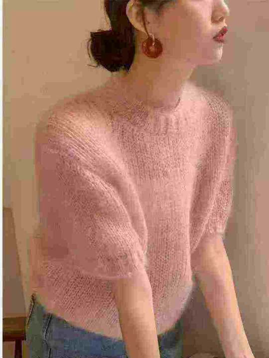 紫色毛织衫女装秋装新款韩系氛围感穿搭宽松百搭七分袖,面料柔软,独立包装...
