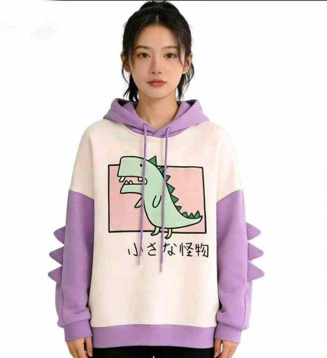 4.8清电商仓回收664件韩系学院风小恐龙设计感加绒靓妹连帽卫衣,码数S-XL。...