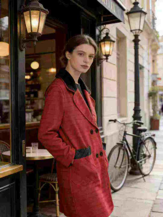 电商仓回收222件复古港风小众设计感红色风衣外套,码数2-4-6,相当于M-XL-3XL。版型阔挺,小众古着风,款号4342,有独立包装。分货➕ 1
