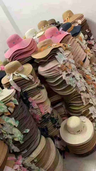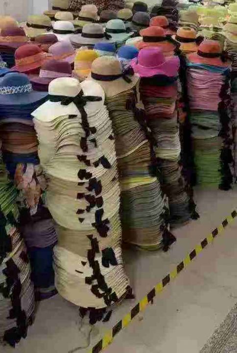 20000顶新款沙滩度假碎花蝴蝶结帽子海边防晒太阳帽夏季法式平顶草帽礼帽 4.99清 分货加0.5