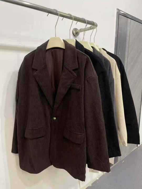 ☕️ 男装灯芯绒西装外套170件全清16.8元,宽松版M到5XL,非常厚实,全部有内衬,正品独立包装。图片三个整款三个色,轻熟风灯芯绒西装外套男款韩版高级感西服休闲男装呢子大衣