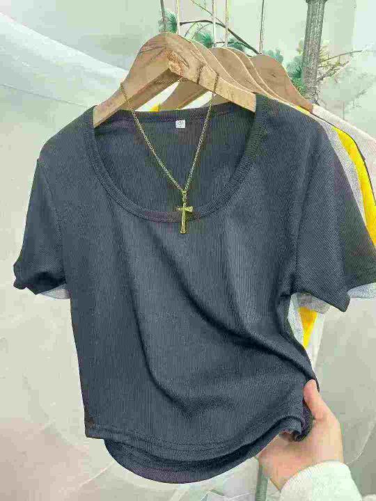 辣妹短袖T恤夏季正肩新款修身显瘦短款上衣,独立包装...