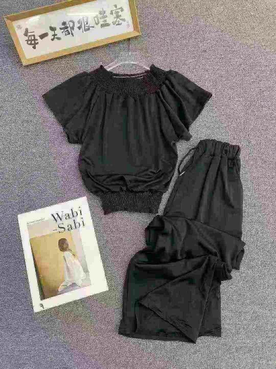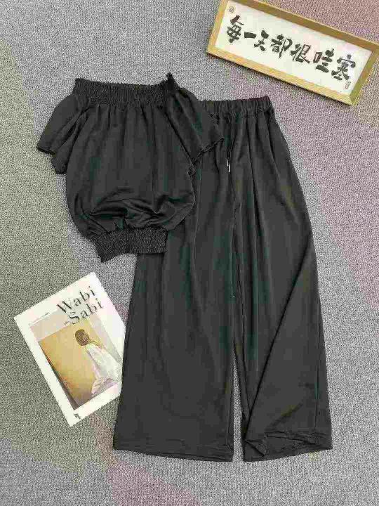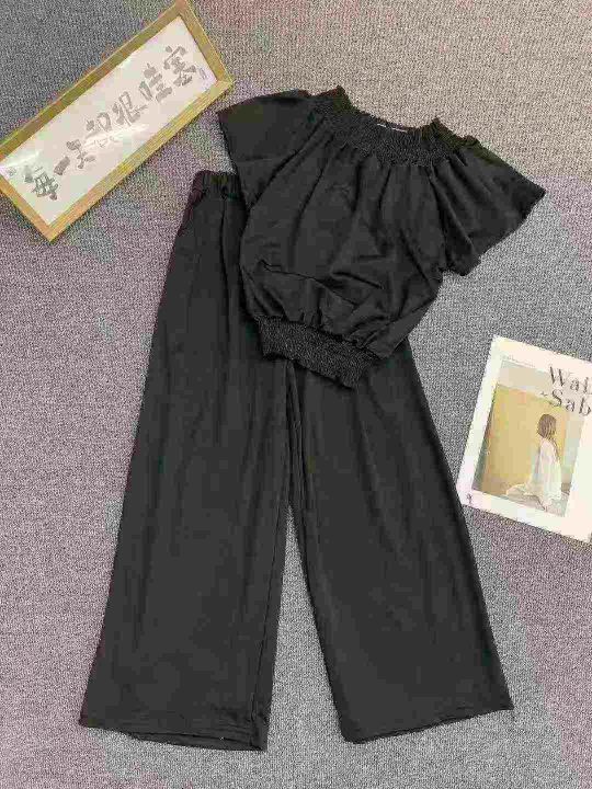 一字肩阔腿裤套装132套8.8,褶皱收腰,裤子有口袋裤子...