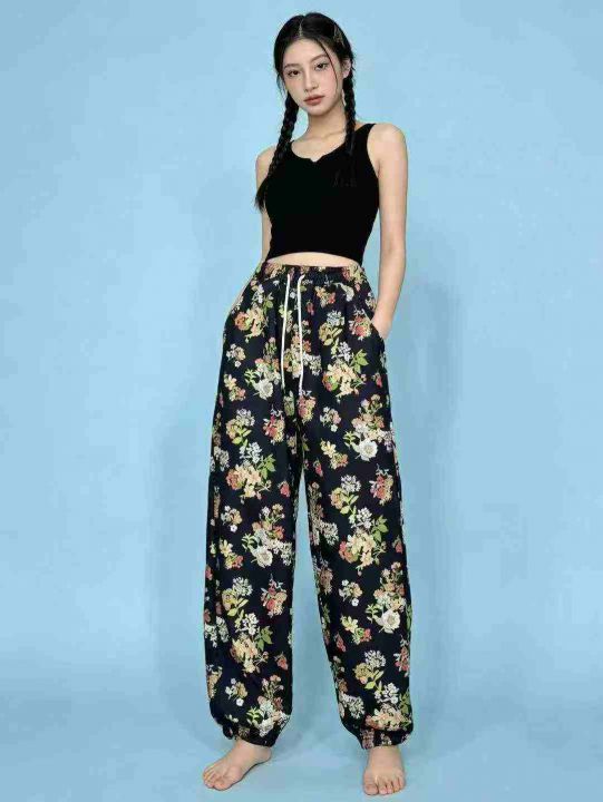 圣诞年秋冬新款加绒加厚洋气束脚哈伦裤网红欧洲站复古印花女卫裤,独立包装...