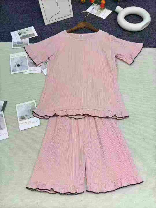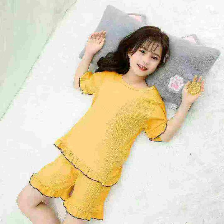 夏季纯棉薄款短袖女童睡衣宝宝空调服中大童女孩卡通家居服套装,数量406套,独立包装,码数10-18(相当于110-170),全清7.9元。 货号:24862