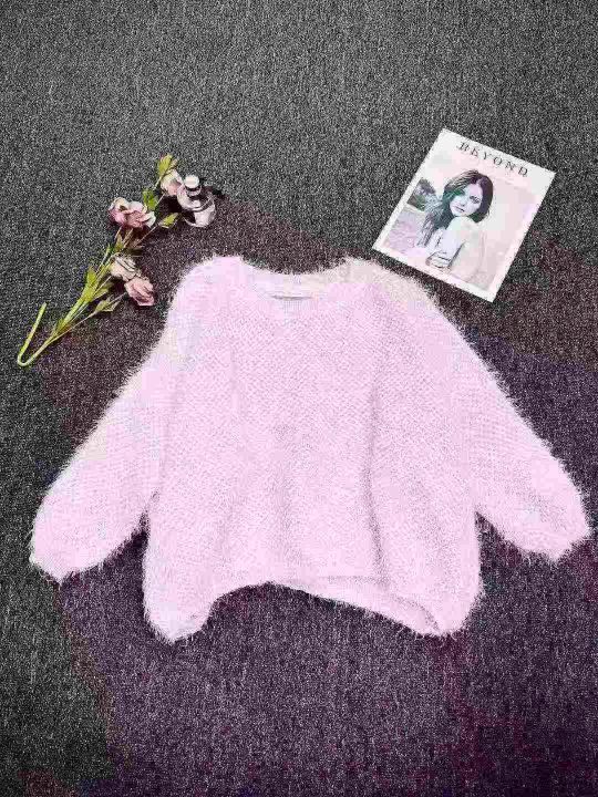 紫色毛织衫女装秋装新款韩系氛围感穿搭宽松百搭七分袖,面料柔软,独立包装带吊牌,码数S-XL,数量300,全清 4.8,分货➕1。 货号:24862