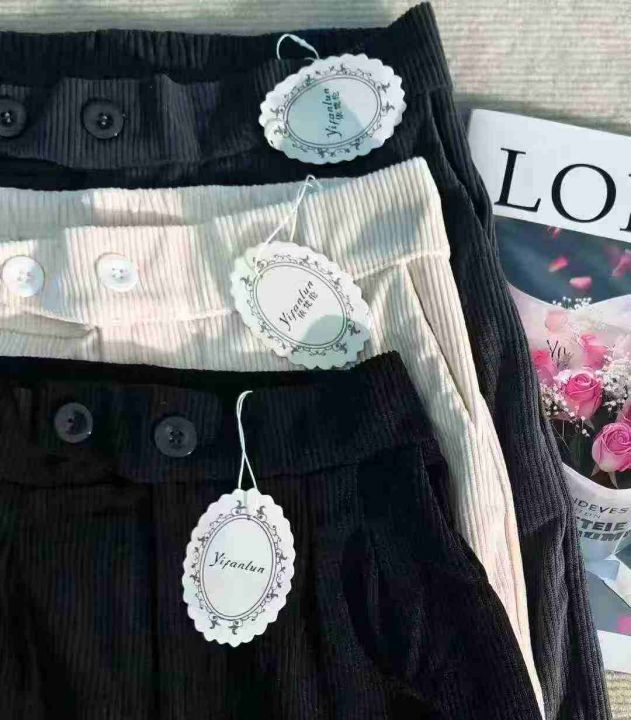 ☆838款,设计感少女靓妹女装灯芯绒双扣拉链款松紧腰高腰阔腿裤,1005件,S-4XL,独立包装吊牌,全清7.8元,分货+0.5