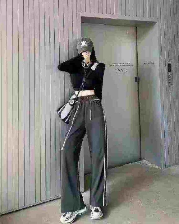 ☆838款,设计感少女靓妹女装灯芯绒双扣拉链款松紧腰高腰阔腿裤,1005件,S...