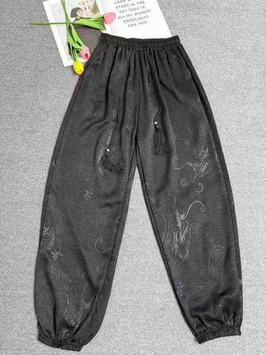 男士夏季新款中国风龙纹新中式冰丝束脚抽绳休闲裤,独立包装,数量363条,尺码MLXL2XL3XL5XL。 货号:24862