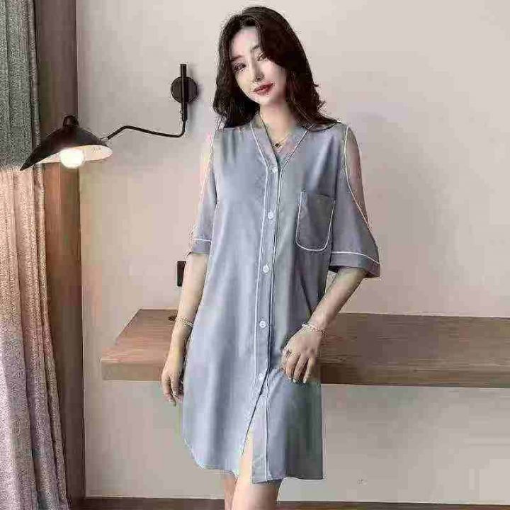 ① 网红冰丝性感露肩韩版宽松家居睡裙!独立包装,整款五色,有部分长袖款,码数M-2XL,数量300件左右,全清6.8元