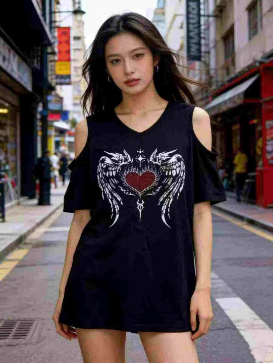 ① 夏季新款爱心翅膀露肩T恤辣妹风上衣!独立包装,码数M-2Xl,数量130件左...