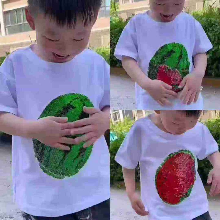 工艺款,儿童纯棉翻转亮片变色短袖t恤数量:19200件,码数:(1-6)100-118-1...