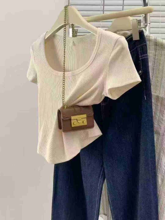 辣妹短袖T恤夏季正肩新款修身显瘦短款上衣,独立包装,货品干净,模特供参...