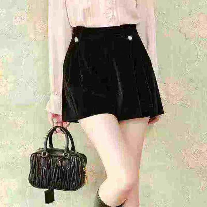 3.8清天猫仓回收220条洋气高级感青苹果金丝绒A字短裤...