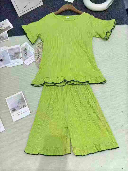 夏季纯棉薄款短袖女童睡衣宝宝空调服中大童女孩卡通家居服套装,数量406套,独立包装,码数10-18(相当于110-170),全清7.9元