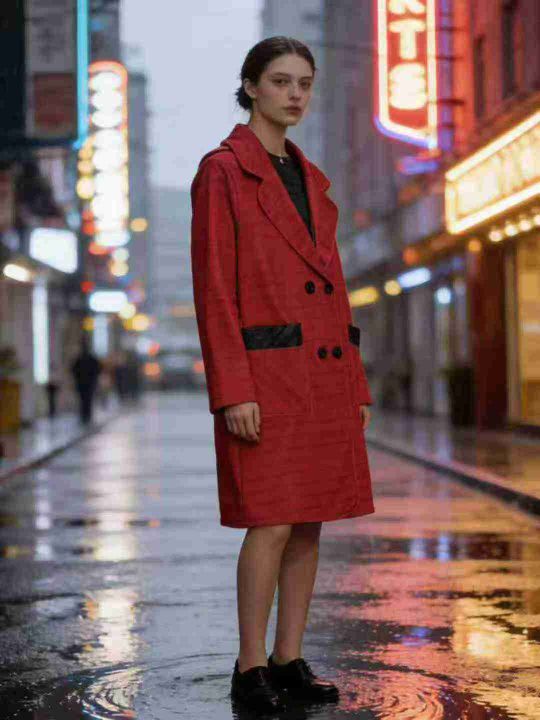 7.8清电商仓回收222件复古港风小众设计感红色风衣外套,码数2-4-6,相当于M...