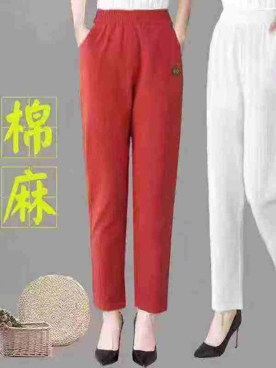 棉麻裤女夏季薄裤子女宽松中年妈妈显瘦女士休闲裤
