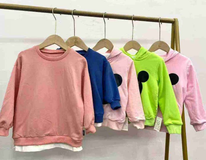 童装休闲卫衣191件,其中圆领假两件款163件,加绒连帽款28件,码数90-140码...