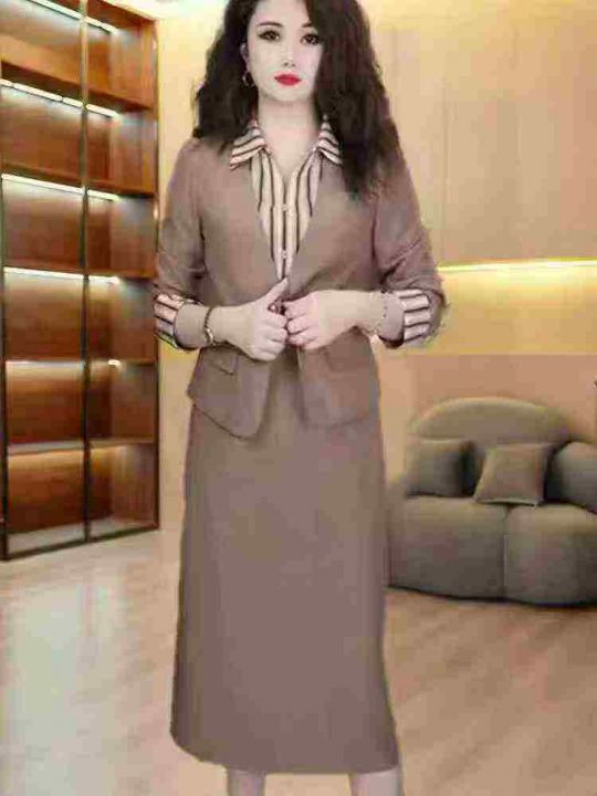 430件高级端庄气质两件套女2025秋季新款外套搭裙子修身高贵时尚套装,整款2个色,码数1-4码,独立包装